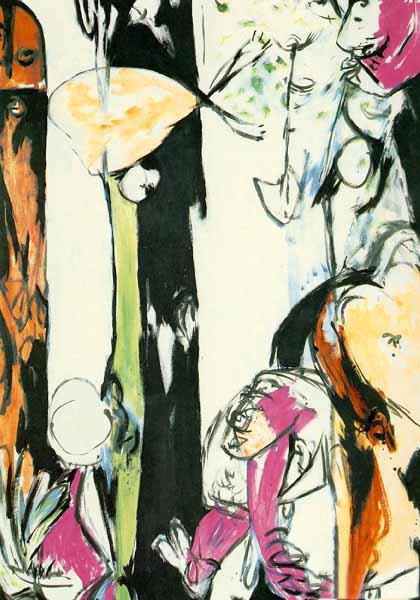 与尼采的的存在主义观点相契合的绘画形式就是抽象表现主义,二战后欧洲经济萧条,导致一种普遍的失落感、幻灭感和怀疑感,这种大环境下就使得自我存在的价值显得尤为重要,“生”的思想也就发展起来了。