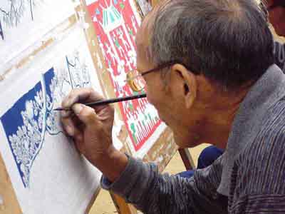 农民画的制作要经历以下几个步骤:构思、画草图、复制、涂颜色、调整等。构思好后,用铅笔起好草图,然后将它复制在画纸上,再慢慢涂上水彩,涂完色后还需仔细观察调整,农民画最重要的是构思。由于农民画的创作者大多数是农民,因此很多人都是将自己的生活经历描绘出来。画面线条简单,是农民生活的真实写照。来源:中国民间艺术中心